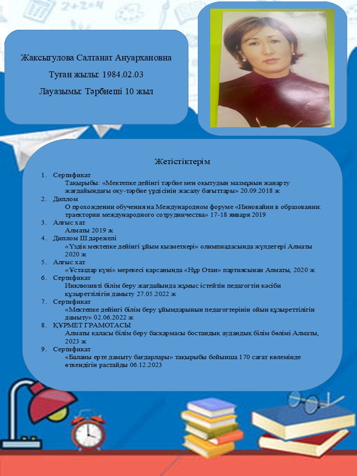 Жаксыгулова Салтанат Ануархановна » «№189 бөбекжай -балабақшасы»