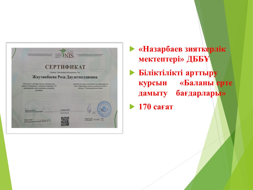 Жаутикбаева Роза Даулеткелдиевна » «№189 бөбекжай -балабақшасы»