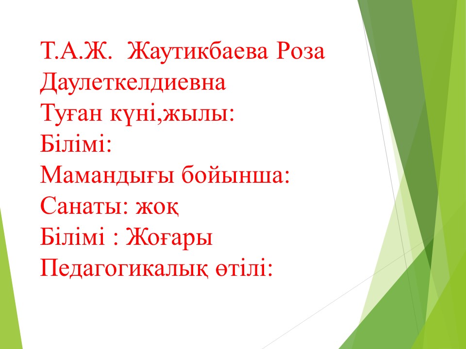 » » » Жаутикбаева Роза Даулеткелдиевна