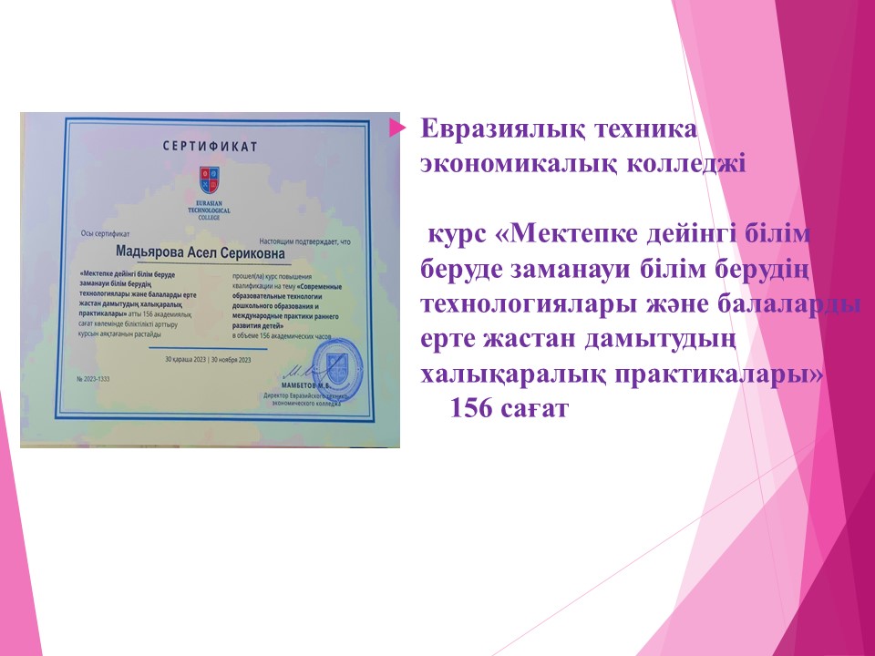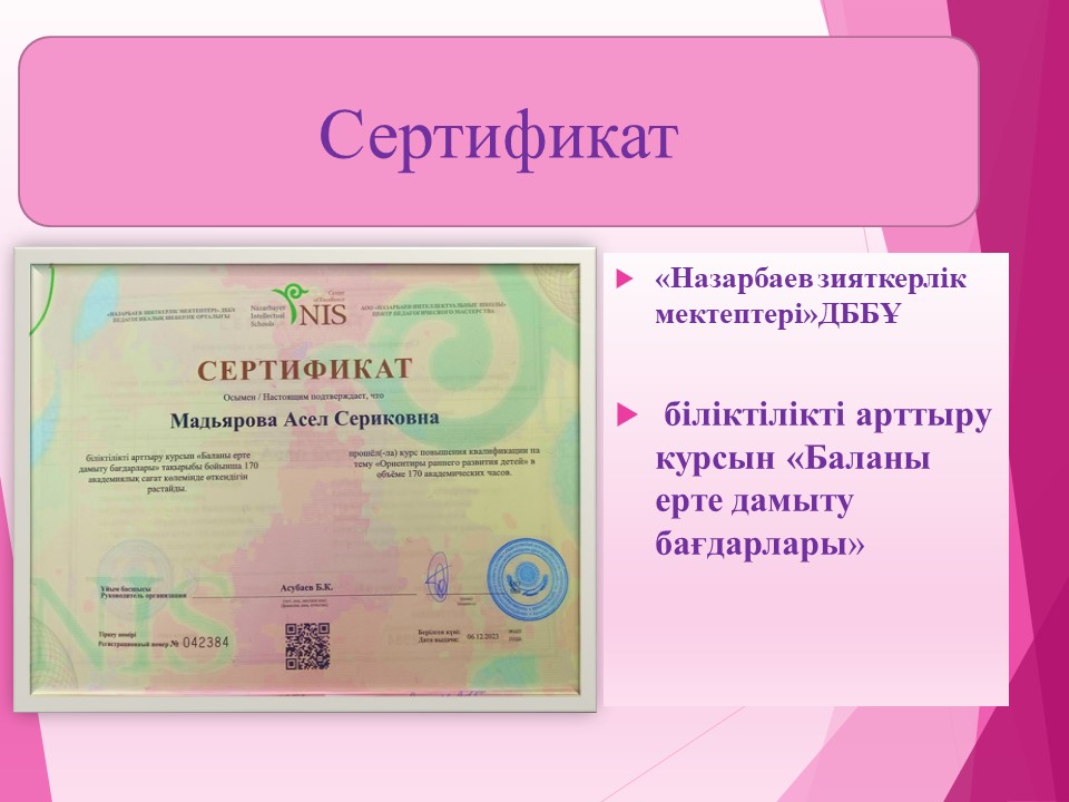 Мадьярова Асел Сериковна » «№189 бөбекжай -балабақшасы»