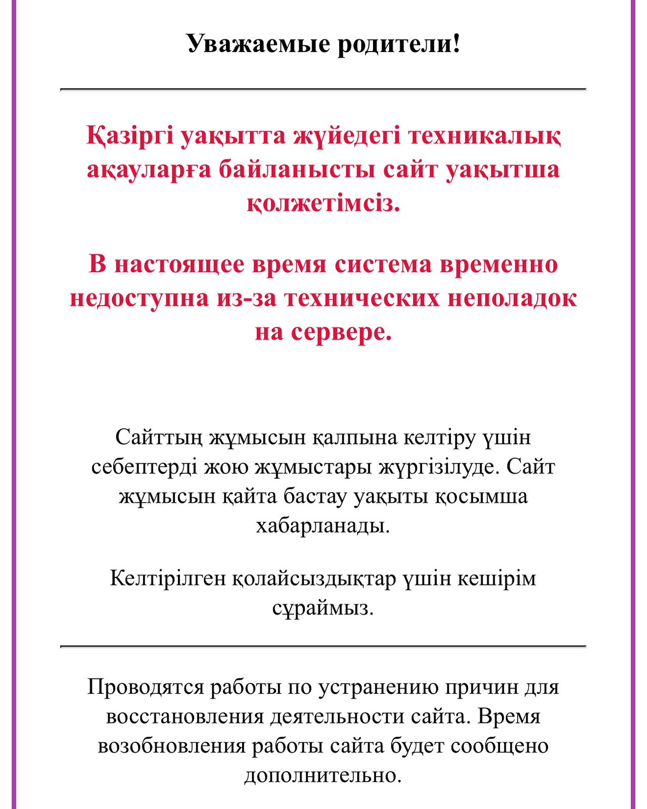 16 мамыр 2025 0 1 2 3 4 5 Ата-аналарға ақпарат Техникалық себептерге байланысты balabaqsha.bilimalmaty.kz сайты уақытша қолжетімсіз.