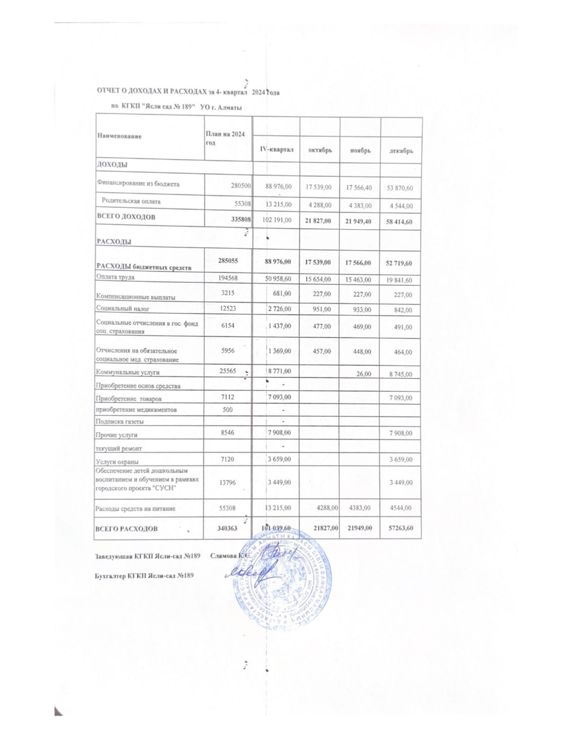 31 желтоқсан 2024 Отчет о доходах и расходах за 4-квартал. Отчет о доходах и расходах за 12 месяцев 2024 года.